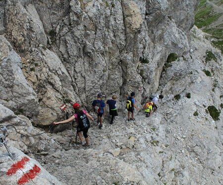 Den blitzblauen Himmel über dir, den warmen Dolomitenfels unter den Füßen und einen Blick bis weit hinüber zu den Hohen Tauern: So ruhst du dich nach einigen Hundert Metern Aufstieg im Klettersteig wohlverdient auf einem der Gipfel der Lienzer Dolomiten aus. Ein anderer Klettersteig Hotspot Osttirols liegt dir in der Galitzenklamm zu Füßen. Geübte Klettersteiggeher mit viel Erfahrung hanteln sich in der Galitzenklamm am Adrenalin Klettersteig oder Dopamin Klettersteig dem Wasser entlang. Familien mit Kindern starten die ersten Klettersteigversuche am Familienklettersteig oder direkt am Galitzenklamm Klettersteig am tobenden Wasserfall entlang. Auch im Nationalpark Hohe Tauern hast du genügend Gelegenheiten, mit dem Klettersteigset die Berge zu erklimmen. Für den Klettersteig auf die Blauspitze (2.575 m), welcher von der Bergstation der Kalser Bergbahnen leicht erreichbar ist, brauchst du rund drei Stunden bis nach ganz oben.