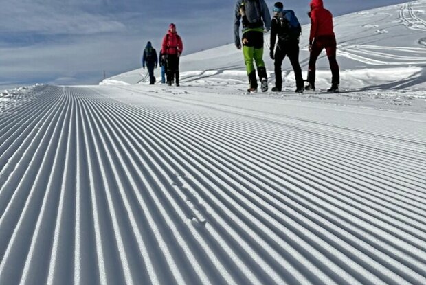 Nach der Auffahrt mit der Gondelbahn Golzentipp wanderst du durch die Unterführung und dann links hinauf auf den breiten Bergrücken, der auch Skifahrern als Piste dient. Bei der Bergstation des Glamplifts über meistens präparierte Spur oberhalb der Kutteschupfen zum Golzentipp. Herrlicher Panoramablick!