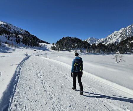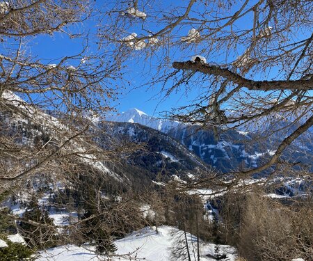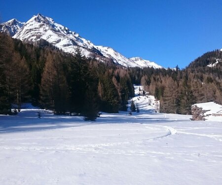 Mediative Ruhe im verschneiten Winterwald, nur unterbrochen vom Knirschen der Schritte im Schnee oder dem gelegentlichen Ruf eines Waldbewohners. Der eigene Atem in klarer Winterluft. Ja, Winterwandern in Osttirol entschleunigt!