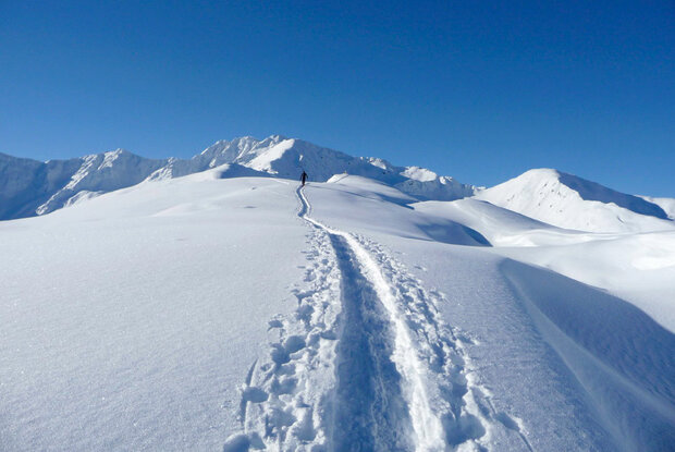 The starting point is the covered wooden bridge at the entrance to Zwenewaldtal in Hopfgarten in Defereggen. We follow the long-drawn-out forest trail up through a steep forest, until a route signpost leads us to the right to the Alpine inns of the Gagenalm. The first detour to Bichleralm goes unnoticed. After some 2 - 2 ½ hours you come to the Gagenalm and in front of us the broad ridge mentioned now stretches out in front of us at the start, which in the map is called Gagen and Gagenhöhe. Its highest point measures 2463 m and is the destination for the day. The ski track proceeds from the Alpine inn along this ridge line without much difficulty and in an easy up and down section to the summit which provides lots of views and a cairn (1 – 1 ½ hours from the Gagenalm). Descend either along the ascent track or via the south-east pastureland to the Bloshütte (1800 m) and via the wide forest trail back to Hopfgarten.