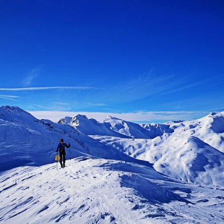Above Thal, situated on the sunny side of Pustertal, the Compedal ski chalet is concealed (1920m) with its sledge run. This ski tour is ideal for beginners and the more leisurely. Calling in at the ski chalet provides a cosy end to the activity. The starting point of the ski tour is the hamlet Bichl on the Pustertaler Höhenstrasse. After the first curve we leave the forest road to the right and walk uphill through the forest to the Compedal ski chalet, repeatedly crossing the forest road which we can also follow.