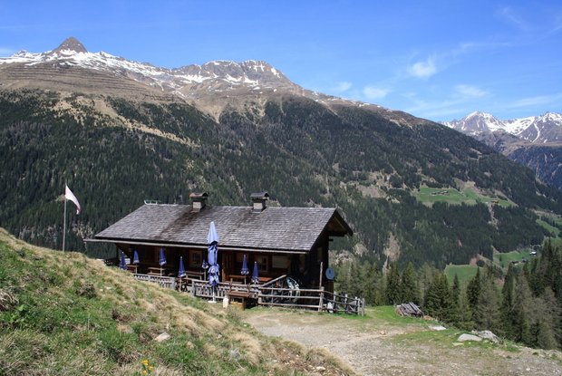Vom Ausgangspunkt, dem Kirchl "Maria Hilf" zuerst ca. 800 m über den mittelschwierigen Anstieg bis Pötsch (Asphalt). Von dort geht es der Forststraße (Schotter) leicht ansteigend in Serpentinen entlang bis zur Jausenstation Alpe Stalle (1.714 m), wo die Route rechts zur Hinteren Alpe Stalle (2.046 m) abzweigt.