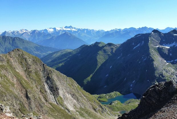 Von der Reiterstube taleinwärts auf der linken Talseite haltend vorbei an der Mooshofalm 1530m. Die Niederbruggeralm 1600m wird auf der linken Bachseite passiert bis wieder der Fahrweg Richtung Volkzein erreicht wird. Dort bei der Brunneralm 1630m weist der Steig 58 den Weg nach oben. Zuerst wird die Unterarnalm dann die Oberarnalm auf 1960m erreicht. Von den Oberen Arnkasern führt der Steig bergwärts zur Bodenhütte. Entlang der Markierung Nr. 323 führt uns ein alter Viehsteig über eine mittelsteile Rasenflanke hinauf und wir erreichen nach einem kurzen Blocktälchen die Wegtafeln. Bei der Wegtafel folgen wir aber der Markierung Nr. 23 zum Mitterberg und von hier dem Steig Nr. 24 zur Hoferalm. Ein Stück nach der Hoferalm weist der Wegweise rechts nach oben zum Villgrater Joch mit 2583m (Hofer Kreuz). Vom Hofer Kreuz gleicher Abstieg und eine Tafel auf einem Steinmann weist zur Volkzeiner Hütte (Nr. 324). Dem Weg Nr. 324 folgend, gelangen wir leicht ansteigend zu einem aus Steinen angelegten Viehpferch und später auf eine Hangschulter. Dahinter breitet sich ein herrlicher Terrassenboden aus, auf welchem wir zur Leisacheralm gelangen. Absteigend über Almen und Wiesen sehen wir bereits unten im Tal die Almen von Volkzein, mit Übernachtungsmöglichkeit in der Volkzeinerhütte.