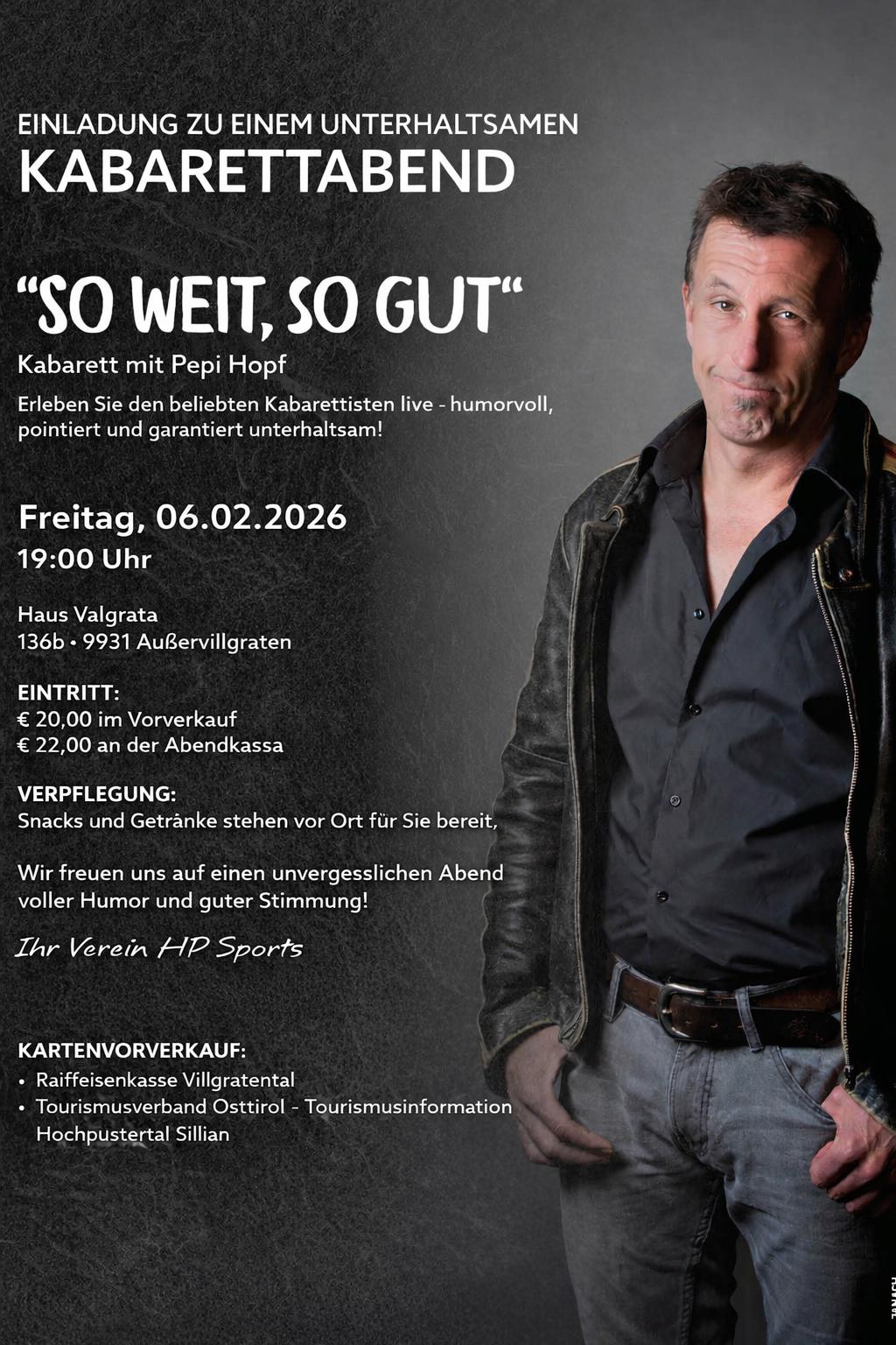 Vorverkaufsstellen: Raiffeisenkasse Villgratental, Tourismusinformation Hochpustertal