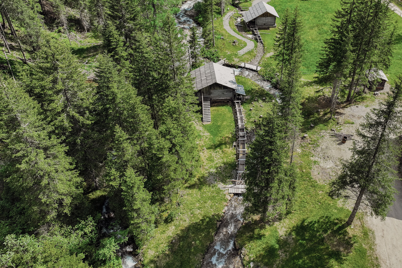 Im Areal des Freilichtmuseums, am Eingang zum Arntal in Innervillgraten, erwartet dich ein Gebäude-Ensemble, das in den letzten Jahren und Monaten vom Villgrater Heimatpflegeverein aufgebaut und liebevoll restauriert wurde: Die Wegelate Säge, der Lodenstampf, die Lüfter Mühle, der Einhof "Neuhauser" und die Almhütte "Riepenkammer".