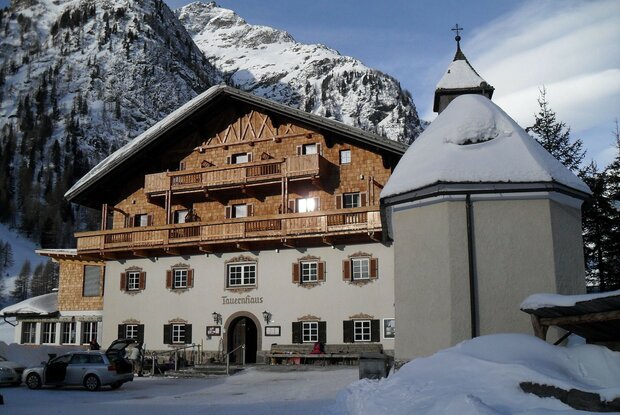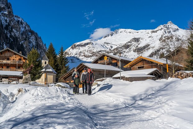 Diese Familienwanderung startet beim Matreier Tauernhaus und führt zunächst in Richtung Gschlößtal. Vor der Messlingbachbrücke biegt man links ab und folgt dem Weg auf der Dammkrone des Tauernbaches. Unter dem dicken Eis hört man das Glucksen und leise Rauschen des Baches. In der Mittagszeit wird dieser Bereich von der sanften Wintersonne zum Glitzern gebracht. Nach 1,8km erreicht man wieder den Startpunkt.
