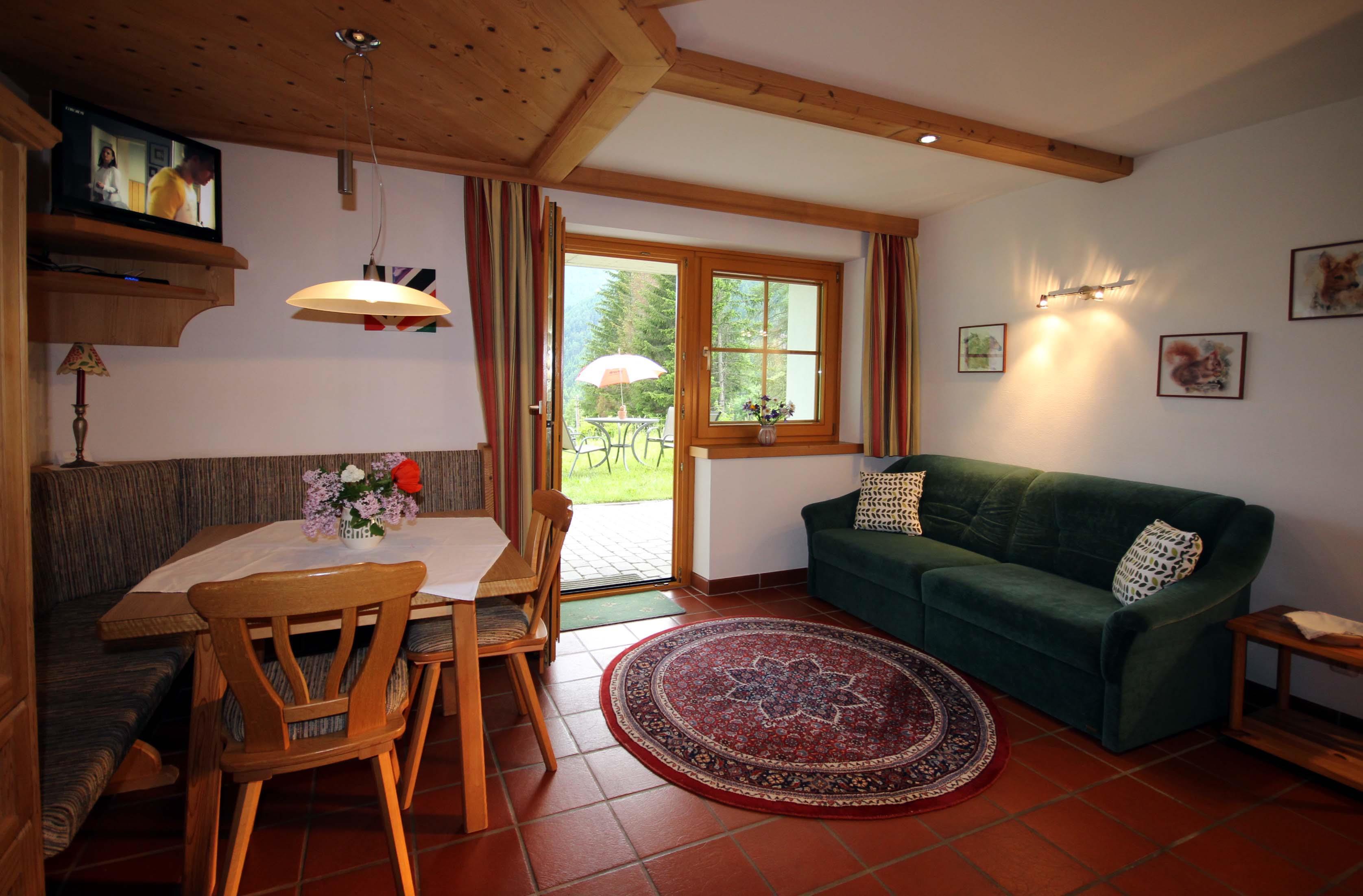 Sonnige, ruhige Waldrandlage, eigene Terrasse, vollwertige Holzeinrichtung, Kachelofen, Doppelkomfortdusche und Dampfsauna, Spülmaschine. Direkter Ausgangspunkt für Höhenwanderungen und zum Kalser Talrundweg.