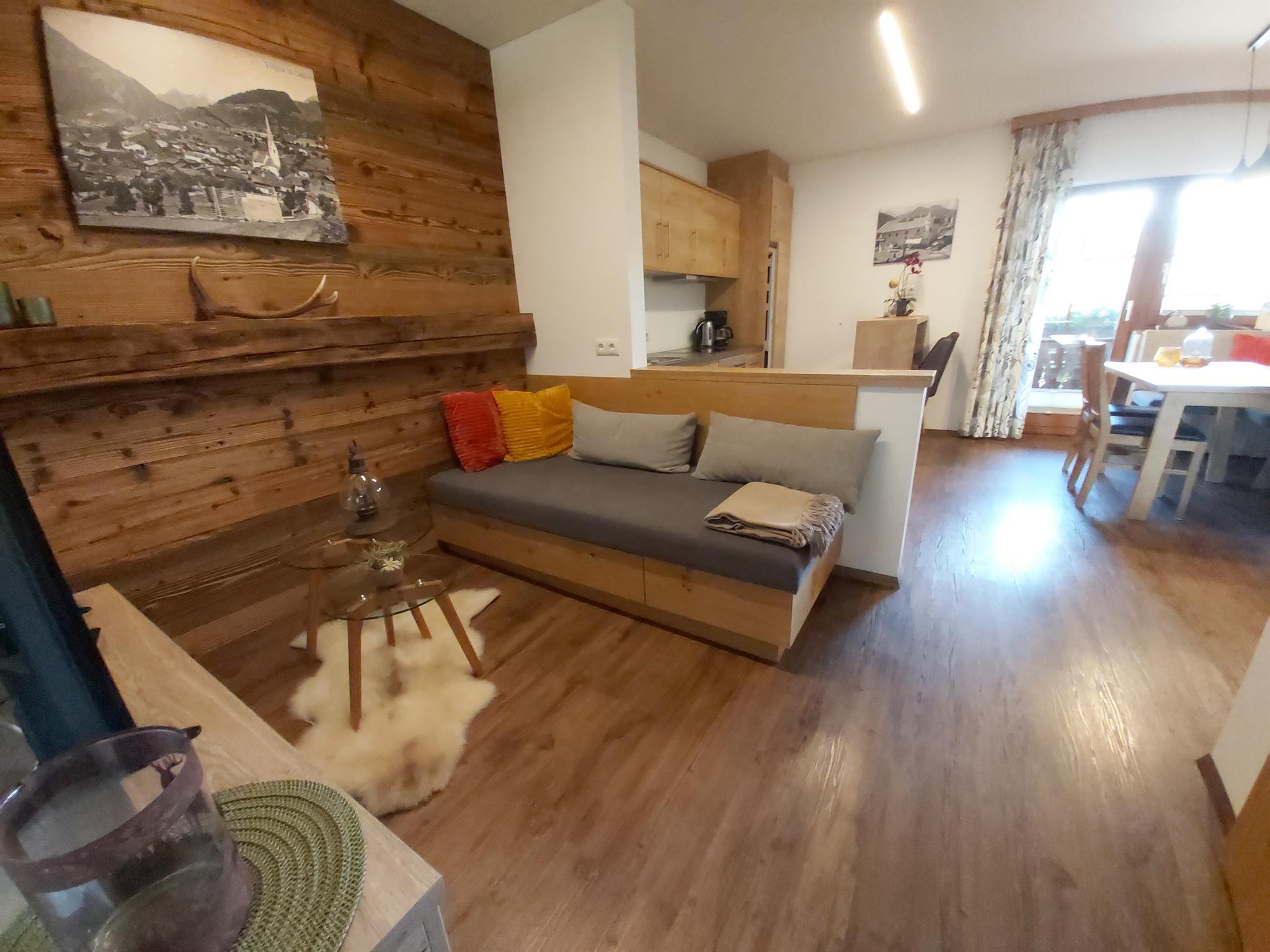 Gratis-Skibus- und Bushaltestelle, Geschäfte, Bäckerei, Cafe´s, Gasthäuser usw. sind wenige Gehminuten entfernt. Eine öffentliche Elektro-Tankstelle für E-Autos ist direkt vor unserem Haus.