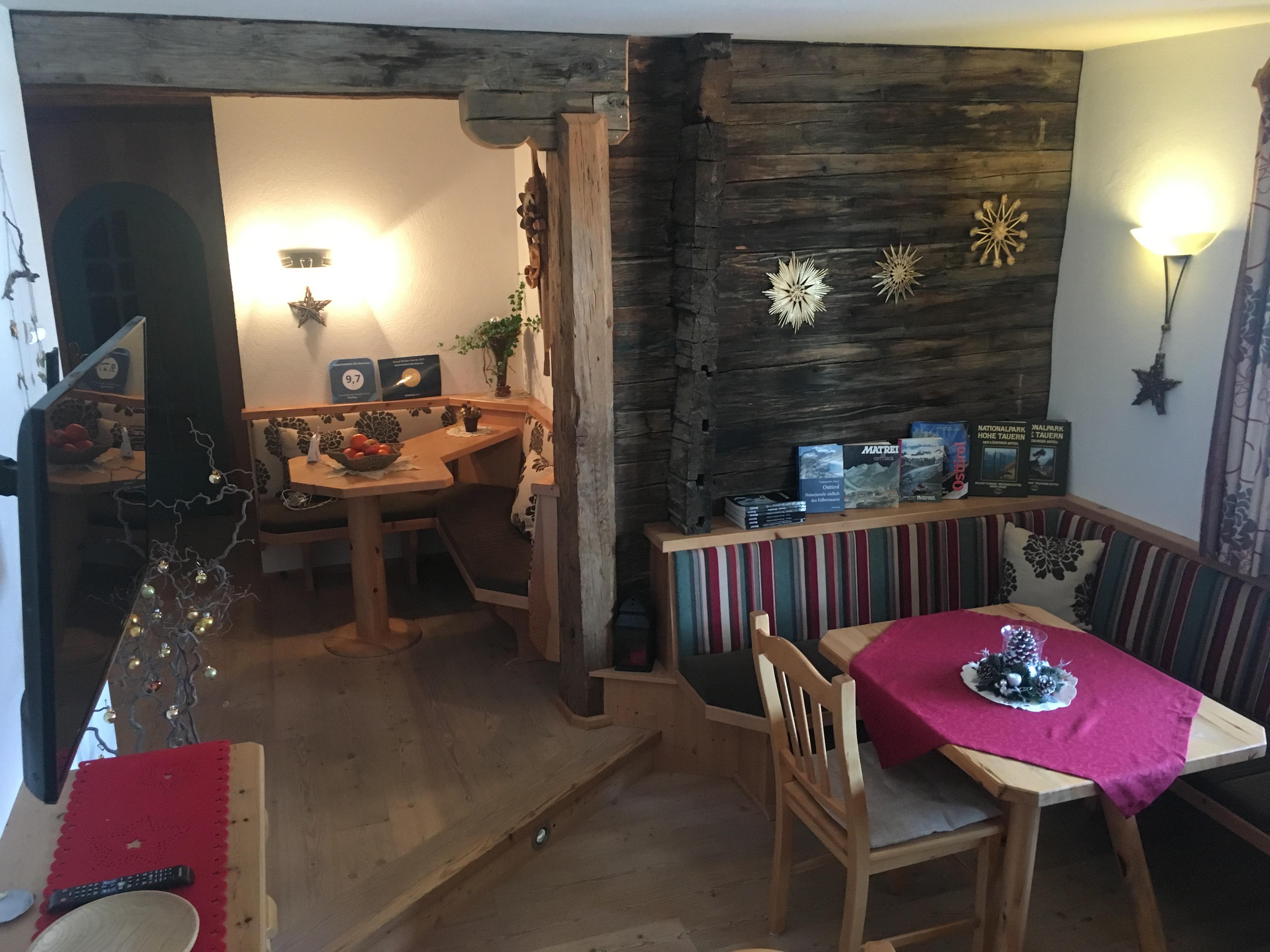 Direkt im historischem Teil von Matrei. Unsere Nachbarn sind das Nationalparkhaus und das Veranstaltungshaus Kesslerstadel vom ÖAV. Sehr ruhige Lage inmitten der alten Bauernhäuser von Matrei. Beim Umbau wurde der Charakter des Bauernhauses beibehalten. Die Innenausstattung ist top- und einzigartig gestaltet. Alle Appartements wurden von heimischen Künstlern nach dem Thema "Blumen und Wiese" gestaltet.Stilvolle Einrichtung im gehobenen Tiroler Landhausstil und gemütliches Ambiente.