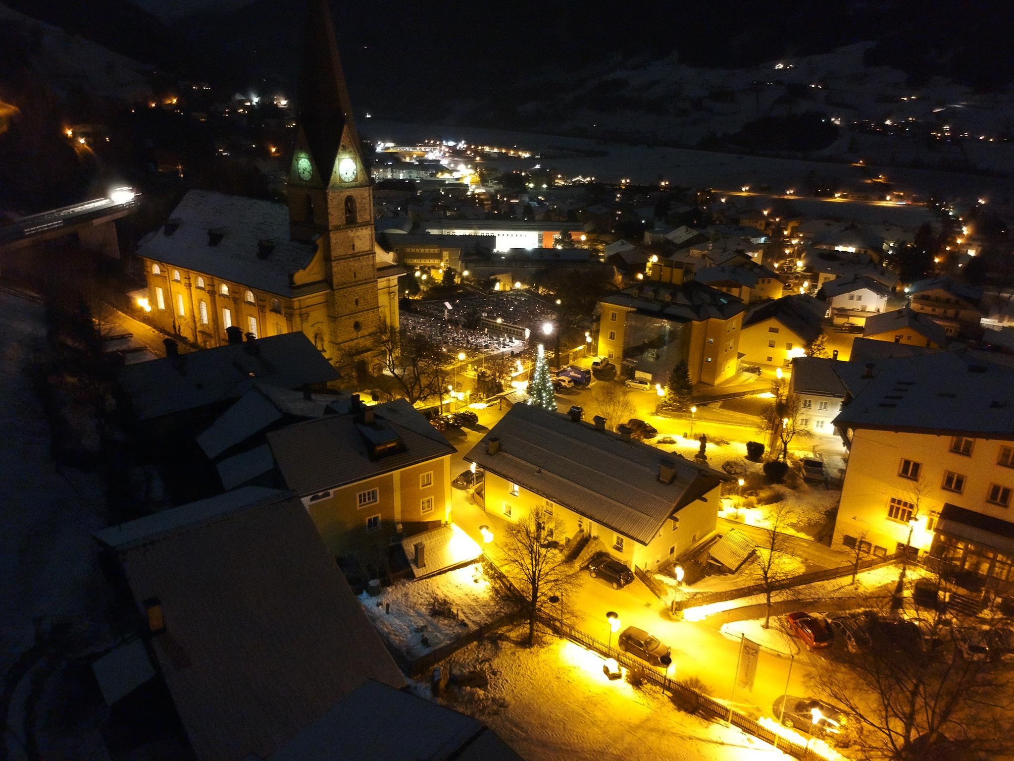 große Gartenterasse / Balkon mit Blick auf die alten Bauernhäuser in Ortszentrum von Matrei.