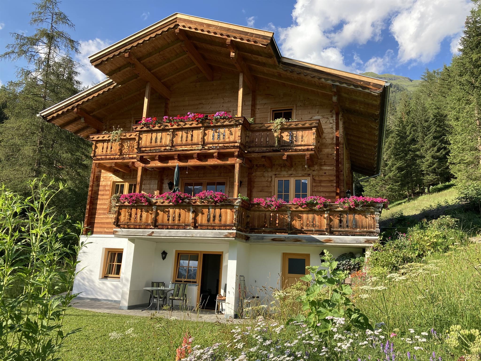 Sonnige, ruhige Waldrandlage, eigene Terrasse, vollwertige Holzeinrichtung, Kachelofen, Doppelkomfortdusche und Dampfsauna, Spülmaschine. Direkter Ausgangspunkt für Höhenwanderungen und zum Kalser Talrundweg.