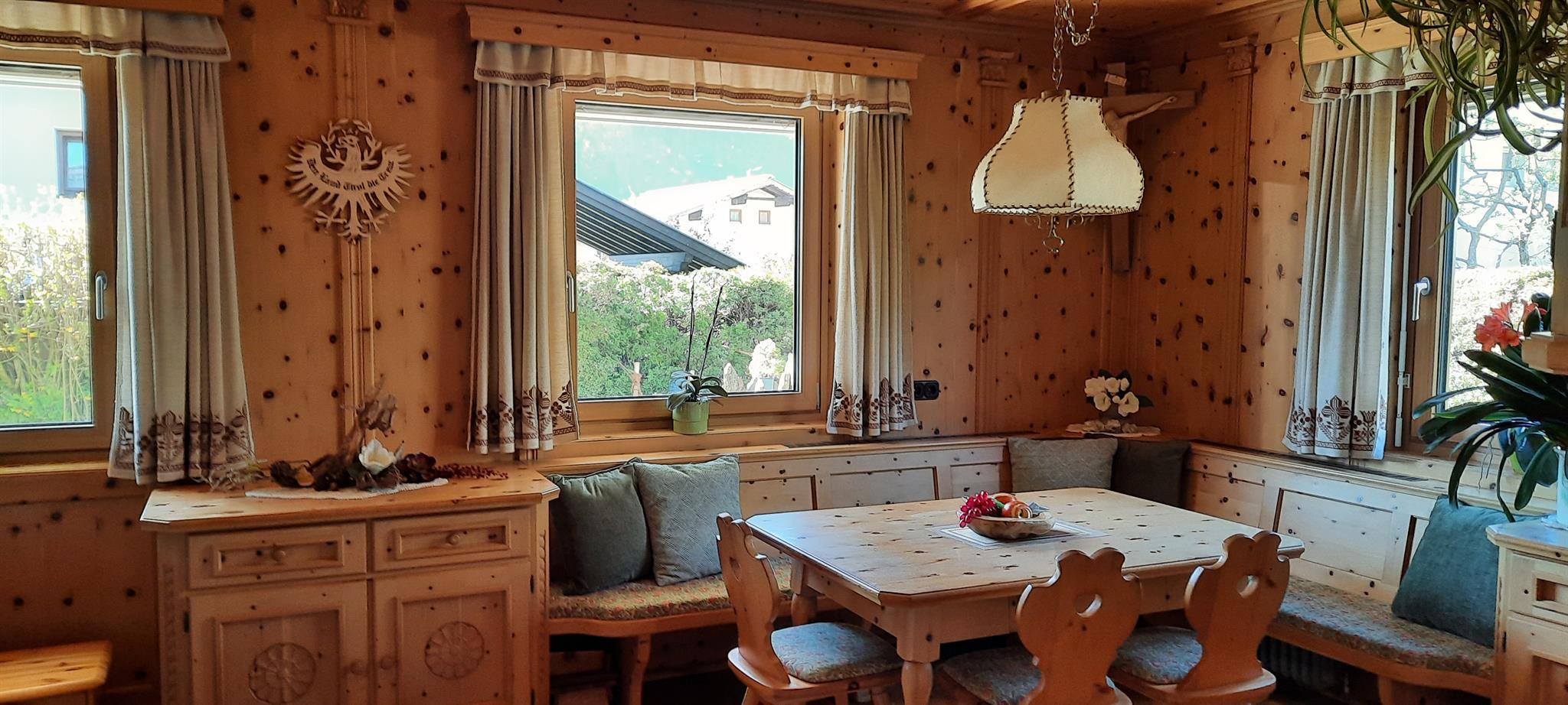 Das Haus liegt am nördlichen Stadtrand von Lienz und befindet sich inmitten einer traumhaften Bergkulisse. Die Ferienwohnung im Erdgeschoß hat eine Wohnfläche von 68 m², wurde vor kurzem größtenteils neu renoviert und bietet ideal Platz für 2 Personen. Die Wohnung besteht aus 1 Schlafzimmer mit Doppelbett, voll ausgestatteter Wohnküche, Badezimmer (Regendusche, eigener Badewanne, Lampe mit wechselnden Farben und Bluetooth Radio) und seperatem WC. Die gemütliche Tiroler Zirbenstube sowie die Terrasse laden zu erholsamen Stunden ein. Der Autostellplatz, ein absperrbarer Fahrradraum sowie das WLAN stehen kostenlos zu Ihrer Verfügung.