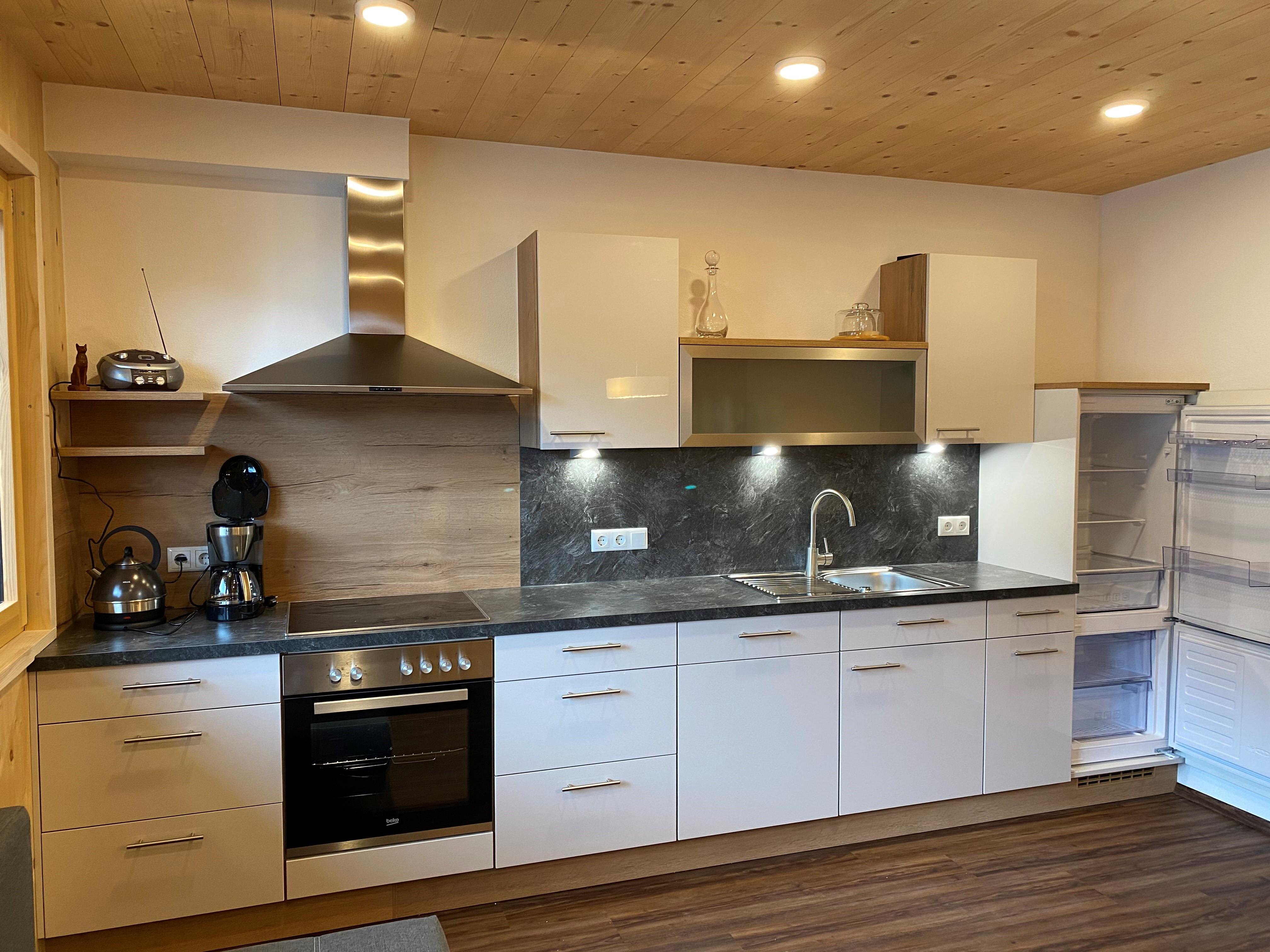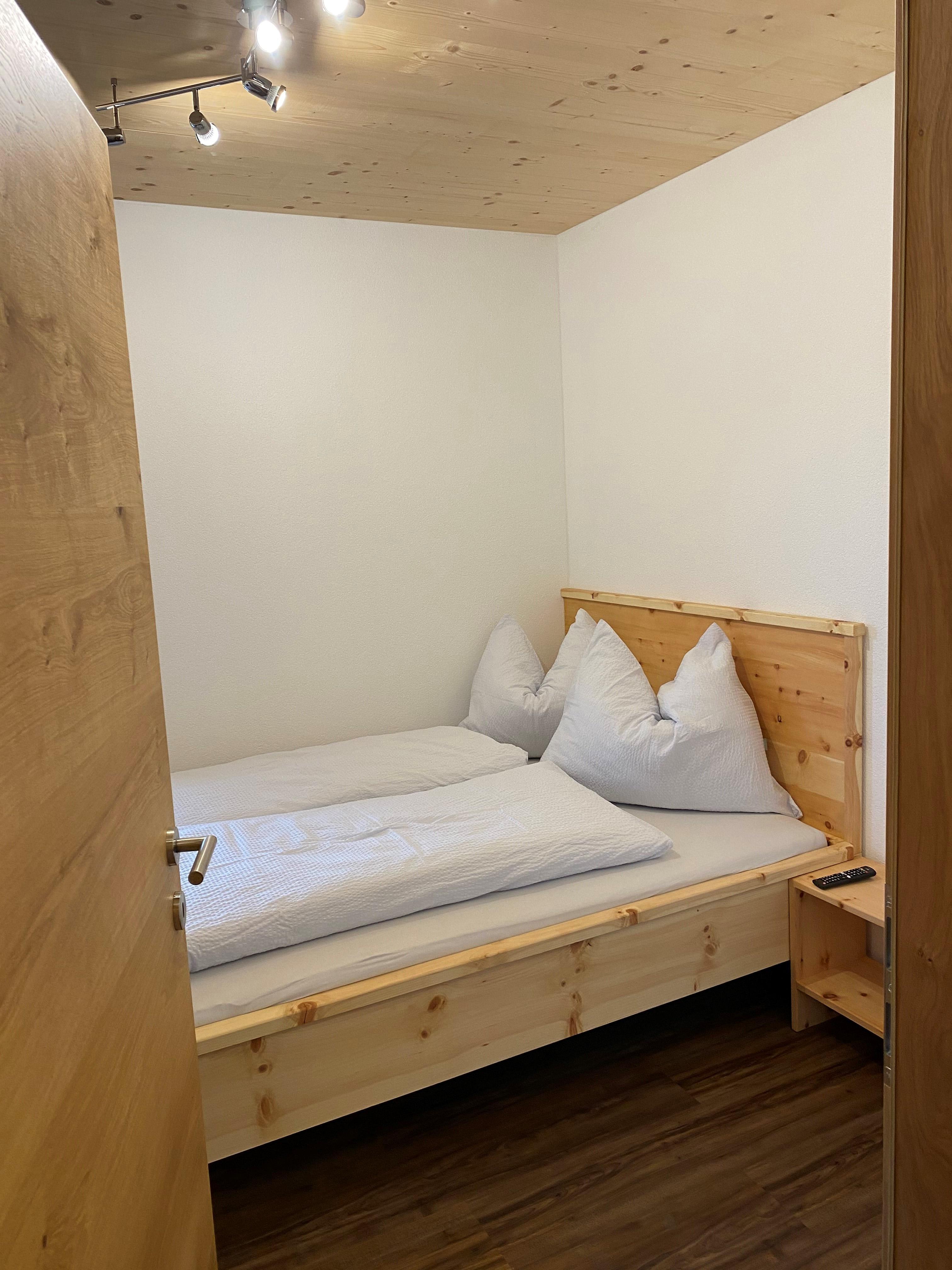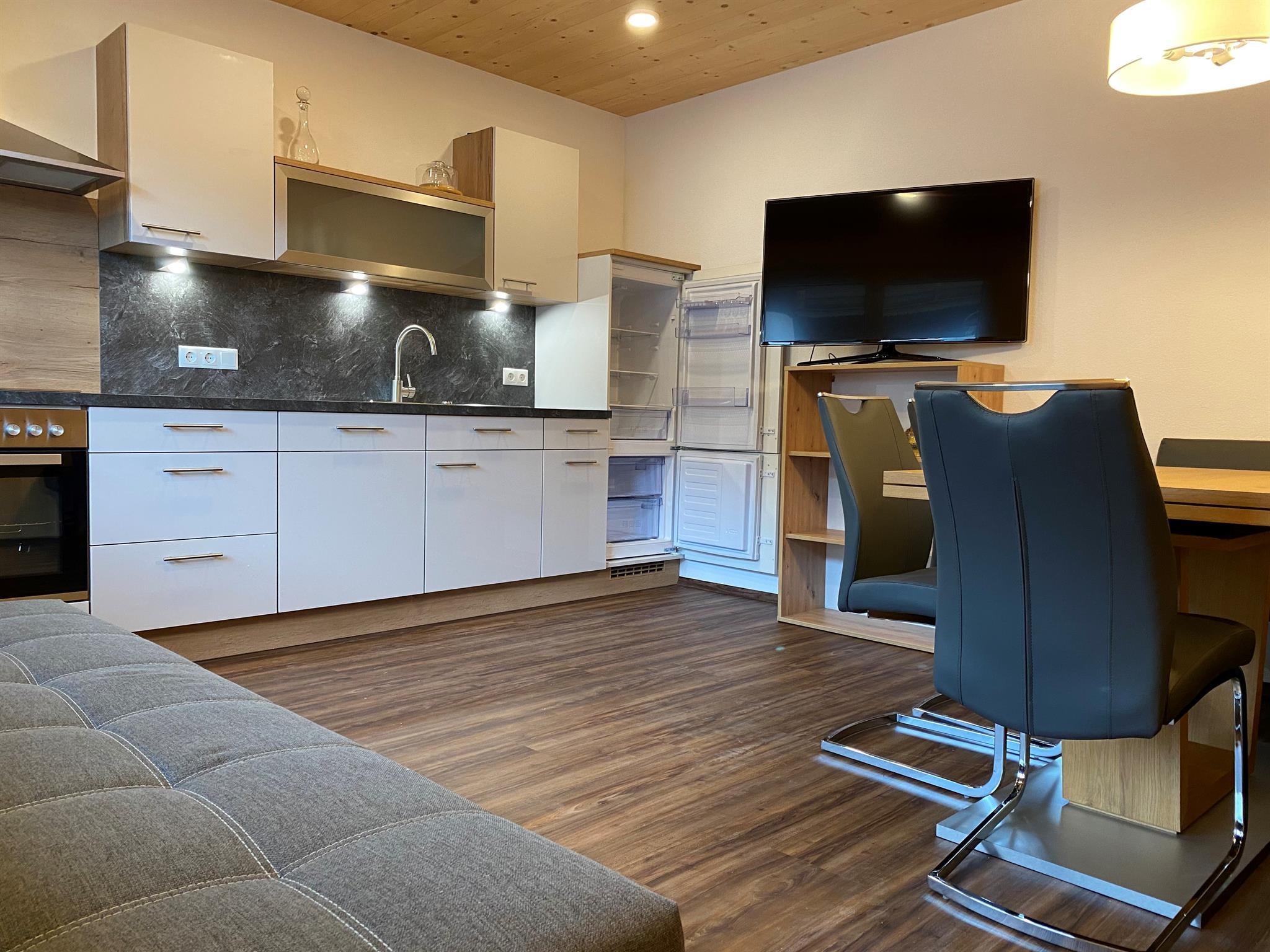 Eine Wohnküche mit Schlafcouch, 2 Schlafzimmer mit Zirbenbetten inkl. TV (1x1,80m & 1x1,40m breit), Badezimmer mit WC & Dusche, voll ausgestattete Küche, Fußbodenheizung, Handtücher vorhanden, W-Lan frei, eigener Garten, kleiner Depotraum, Parkplatz