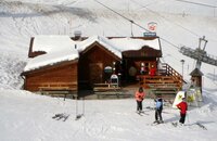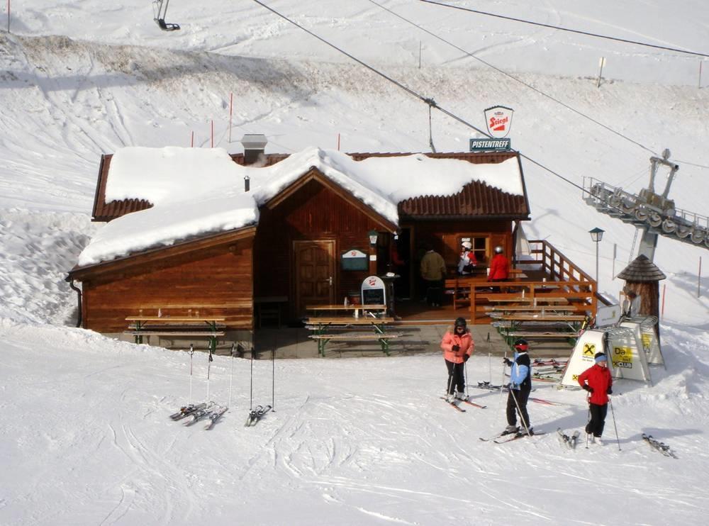 Die Skihütte mit Sonnenterrasse liegt direkt an der Talstation der 4er-Sesselbahn Außervillgraten in Unterwalden.