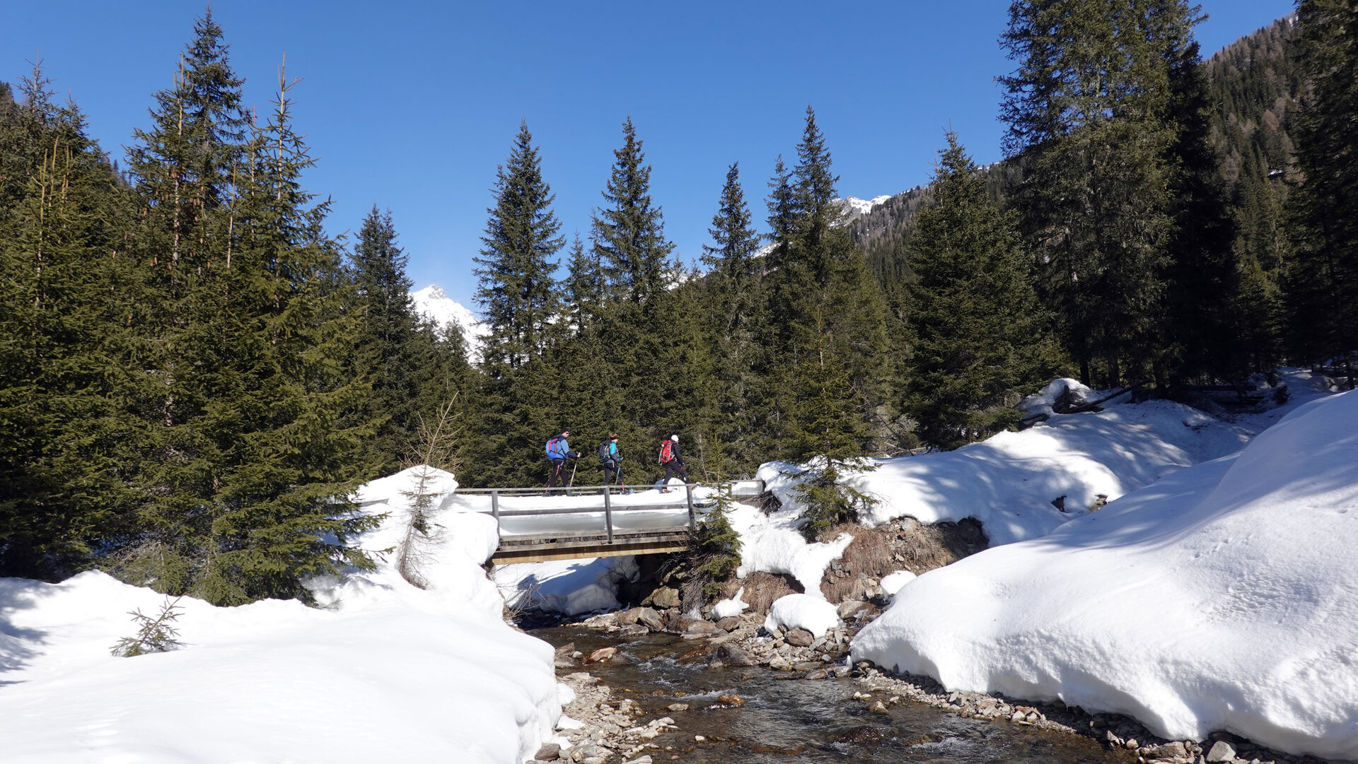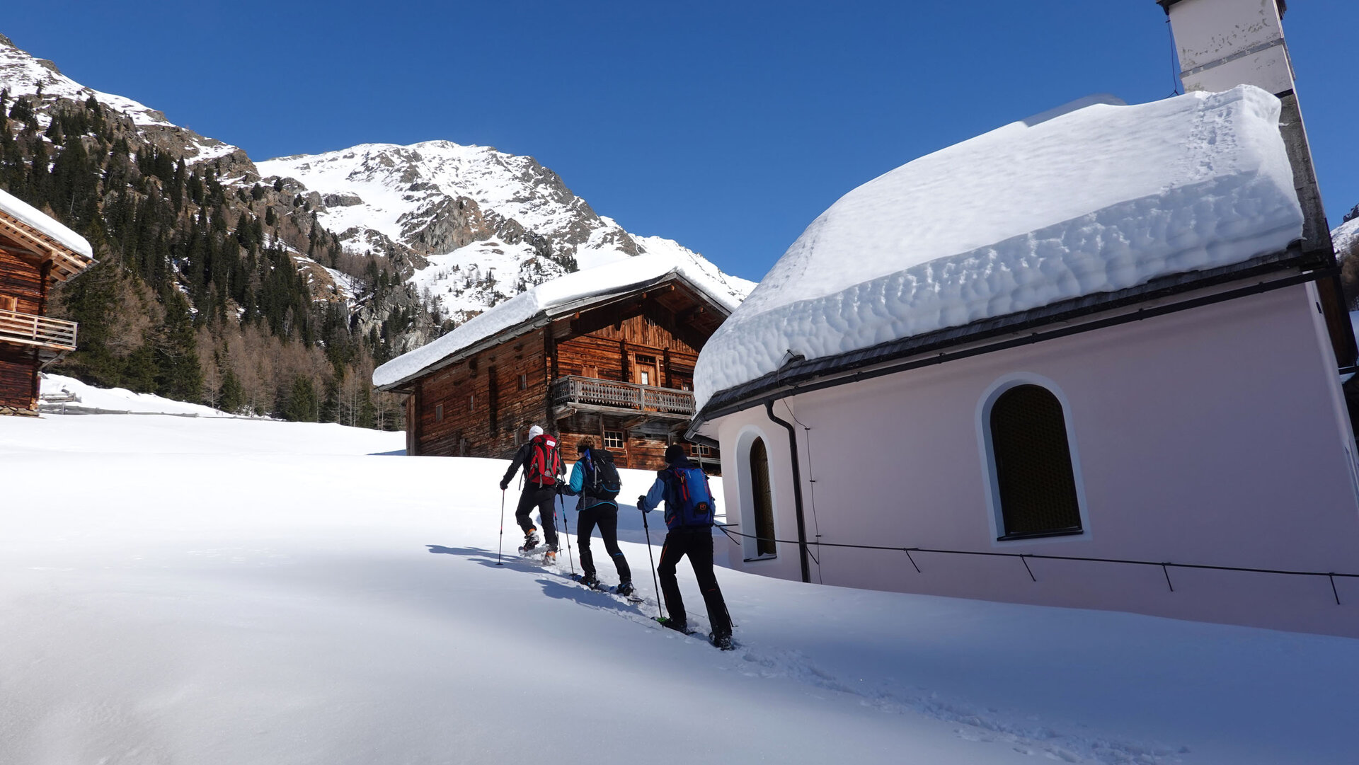 Wandern im Winter, ob mit oder ohne Schneeschuhen, ist ein Naturerlebnis in seiner reinsten Form. Es ist die einsame Stille des frisch verschneiten Winterwaldes und das Knirschen des Schnees unter den Füßen, wenn man die erste Spur durch den jungfräulichen Schnee zieht. Und die Befriedigung, gesteckte Ziele mit eigener Kraft erreicht zu haben - sei es ein entfernter Gipfel oder ein Rundweg oder eine der vielen Almen im Villgratental. Einige Highlights sind Wanderungen zur Unter - Oberstalleralm im Arntal in Innervillgraten oder vom Hochberg zur Kamelisenalm.